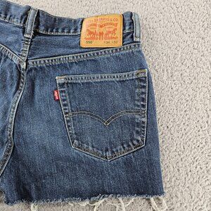 Levis 550 Shorts Mens 34 Blue Denim Relaxed Fit Cutoff Frayed Hem Jeans Casual