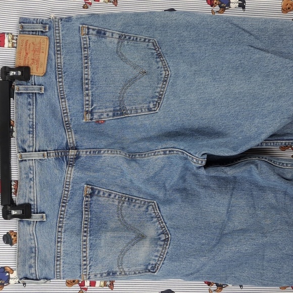 Levi's 550 Relaxed Fit light wash faded straight leg baggy leg denim jeans are in good shape w normal wear. Good wash wear and fade. No hole's no stains, no loose threads. 42 / 30