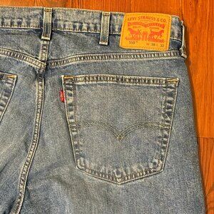 Levis 559 Jeans Mens 38x32 Blue 99% Cotton Straight Leg Med Wash Denim red tab. Estate Sale find- washed. No holes, no stains. Please see photos for measurements