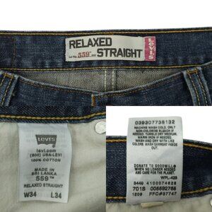 Levis 559 Jeans Mens Size 34x33 Relaxed Straight Leg Denim Dark Wash