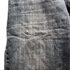 Good previously owned condition with minor hole on front leg. No stains. Relaxed fit and straight legs