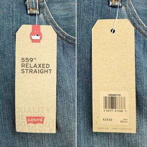 Levi's 559 Relaxed Straight denim jeans, new with tags. Men's size 42x30. I've included exact measurements, so you'll know if this fits you or not. Ships safely in a sealed polymailer :)