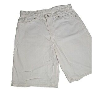 Great pair of vintage Levi's white shorts. These are men's size 38, orange tab, white denim. There are a few yellow discolored areas on the bottom hem area in the last picture. I am sure they are an easy fix. I didn't see them until I took the pictures and wanted to note that. Add these to your vintage collection.