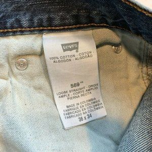 Levi's 569 Jeans Mens 36x34 (38x33) Loose Straight Fit Jeans Dark Wash Red Tab
