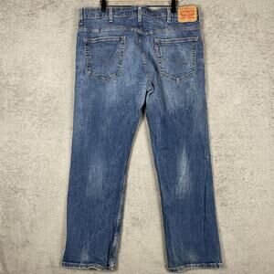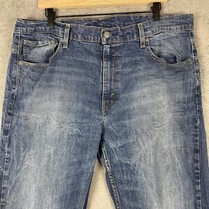 Levis 569 Jeans Mens 38x30 Blue Loose Straight Leg Faded Whiskered Frayed Hem