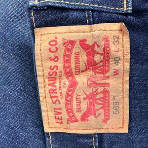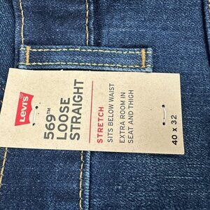 Levis 569 Loose Straight Stretch Jeans Mens Size 40X32 Dark Flexible Fit Denim