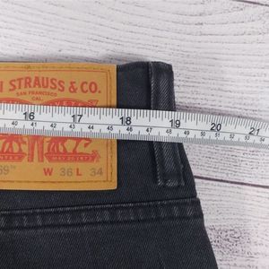 Levis 569 Men's Black Jeans 36 x 34 Red Tab Straight Fit Wider Opening