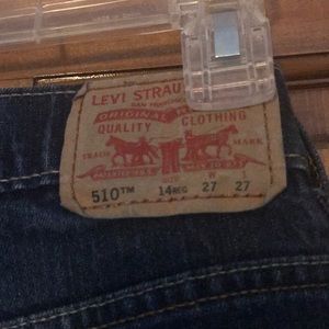 Dark wash boys Levi’s. Great condition. Slight wear on one knee but barely noticeable.