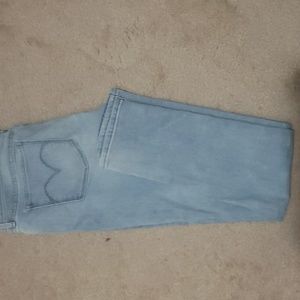 New without tags. Received as a gift (didn't fit me the way i want my jeans to fit but couldn't hurt g-ma's feelings). Never worn. No fraying at bottom on jeans,no stains,no discoloration,no holes or rips. Smoke fee & pet free home.