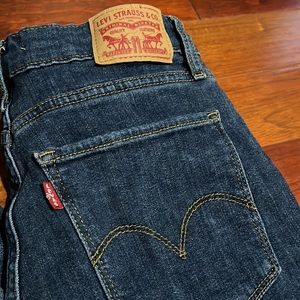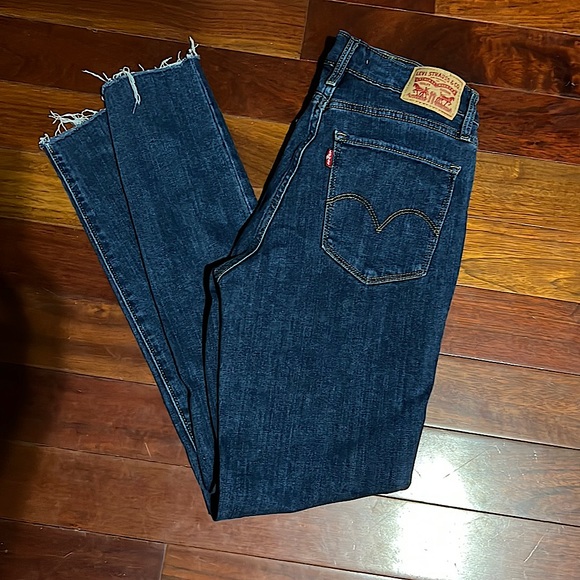 Size 27 (fits like 3) Levi’s 721 high rise skinny jeans. Frayed hem makes them super cute and stylish. Only worn once. Like new condition.