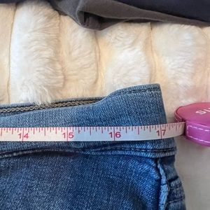 @jvela103 they measured 17” laying flat. They hit around the belly button. They also have some stretch.
