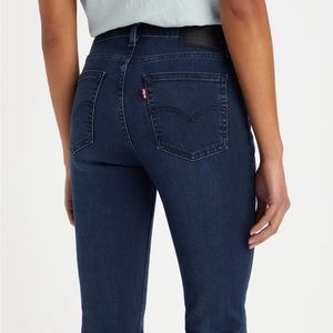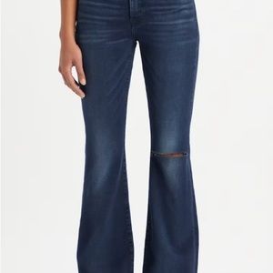 Levi dark wash high waisted flare jean with one distressed knee size 31x34 light stretch this jeans give a very flattering shaping. Dress up or down