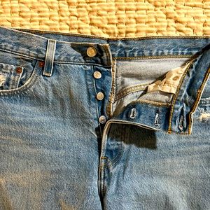 EUC High waisted cropped distressed Levi’s with button fly. Worn a few times.