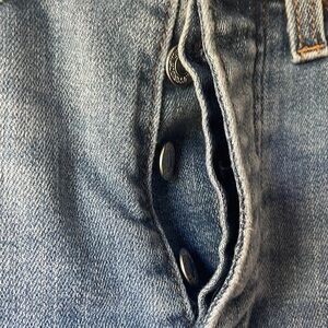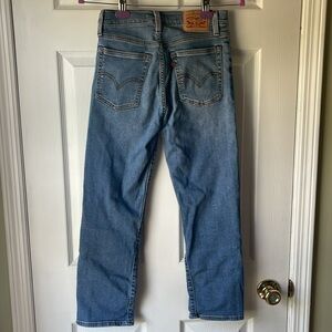 Levi’s wedgie straight jeans-button fly some distressed spots in the front- light denim