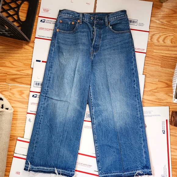 cropped, wide leg, button fly Levi's. very good condition, worn only once.