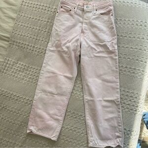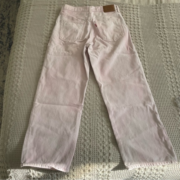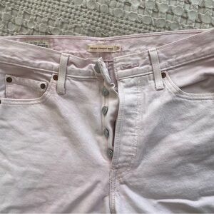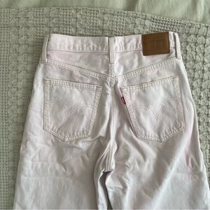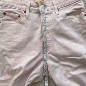 high waisted, light pink levi jeans! small mark on leg shown in pic. IMO these are smaller than a 29 so please see measurements. I listed as a 27, please see measurements!