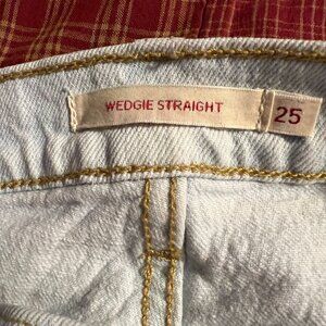 Levi’s wedgie straight jeans- light blue almost white- sz 25. perfect condition. Button fly, high waisted, straight leg