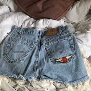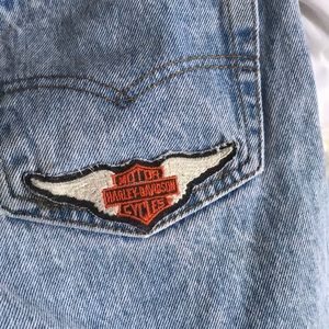 Levi’s 699 High waisted Jean Shorts (Harley Davidson patch) with tall side slits