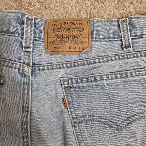 Vintage 90s levis denim short orange tab size 34 light wash blue in good condition 10inseam