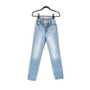 Levi's Light Her Up Wash 70s Ultra High Waisted Flat Front Contrast Topstitching Classic Five Pocket Styling Slim Straight Leg Ankle Jeans Stretch Denim Size 24 - Excellent condition.