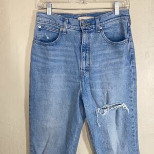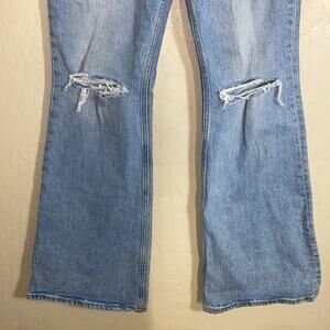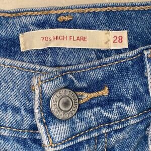 Levi’s 70s high flare jeans. Zipper fly. Distressed knees. High rise. Size 28/32.