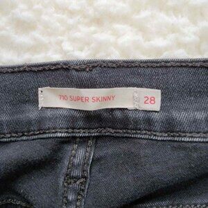 Levi's 710 Super Skinny Jeans for women in black. Size 28, mid-rise, with tapered legs. Crafted from 100% cotton for a comfortable, durable fit.