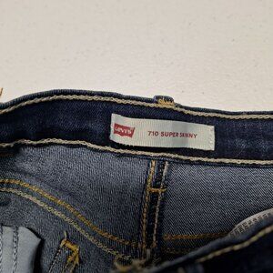 Levi's 710 Super Skinny Jeans in blue are a stylish, form-fitting choice for girls, size 14. The adjustable elastic waist ensures a comfortable fit while the durable denim material stands up to wear and tear.