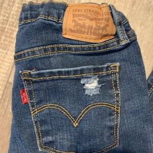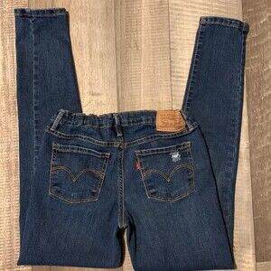 Excellent condition pair of Levi’s style 710– super skinny size 14 regular. ----KIDS----There are some distressed markings on these jeans. Those are from the factory. One on the knee, one on the back pocket, and one on the front pocket. These jeans have the button adjustable waist. 74%, cotton, 20%, polyester, 5% viscose 1% elastin. All rivets, seams, buttons, snaps, zippers, etc. are intact and none missing. No holes, tears, or stains.—( other than factory produced)