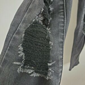 Pre-owned, no issues. See images. Measures 12.5" across waist flat lay, 29" inseam. Holes / distressing all along front.