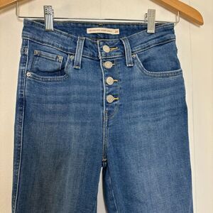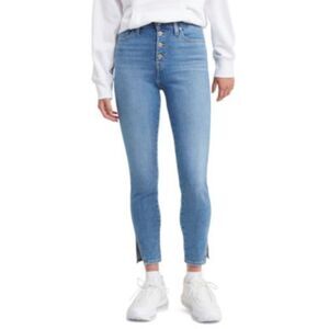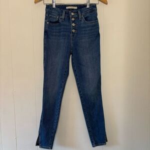 Levi's 711 High Rise Skinny Ankle Jeans Exposed Button Fly Size US 26/2 Blue Split Hem Cotton Denim