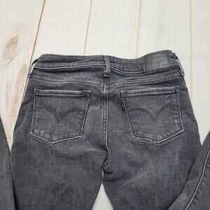 Classic Levis 711 skinny jeans! Mid rise in a dark gray wash with natural distressing. Gently worn and in great condition, size 25x32.