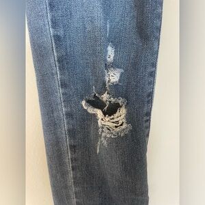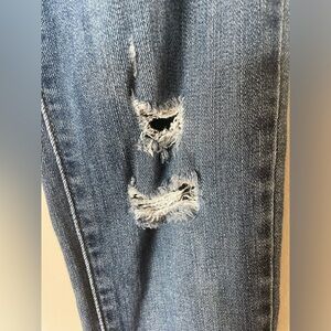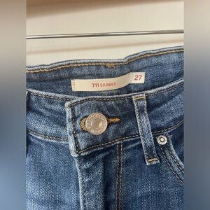 Levi’s 711 Skinny Medium Wash Ripped Jeans; Size 27; Great Condition; Last picture shows thread popping up on back of left leg (no hole)
