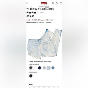 Levi's 711 Women’s Modern Rise Demi Curve Zip Ankle Crop Jeans/Jeggings