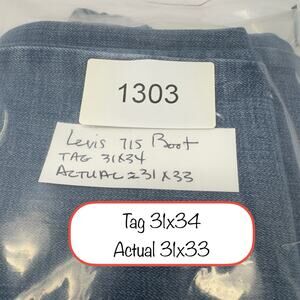 Mid wash, mid rise, slim bootcut, stretch, 5-pocket, zip fly, two-horse, red tab. Preowned. Examine all photos. —Flaws: Light spandex ripple near zipper. Tag size differs from actual measurements. No holes, stains, or tears. —Brand: Levi's, Style # 790650001, Color: Hawaii Breeze Medium Wash —Style Profile: Neutral Western Ranch Farm Grunge Retro —Tag Size 31x34 Measures ≈31x33. See pics. —For Fit Measure Your Similar Garment and Compare —Care: Machine washable Displayed color may vary with lighting or device. Super fast shipping. Same or next business day. Levis 715 Jeans Bootcut Women 31x33* Denim Stretch Western Boho Hippie Capsule (1303) #LIVEINLEVIS Barn, Basic, Biker, Boho, Boho Grunge, Capsule, Casual, Closet Staple, Comfort, Country, Cowgirl, Everyday, Girl-Next-Door, Grunge, Hippie, Hipster, Logo, Normcore, Punk, Rock, Stylish, Timeless, Trendy, Y2k