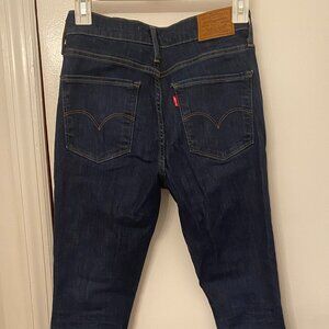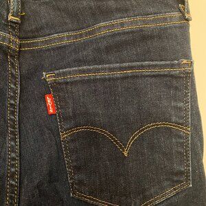 Brand new pair of Levi's jeans, never worn! Size: Levi's 27 (US 4) (UK 8) Waist: 28.25 inches Hip: 37 inches Color: dark navy blue Material: jeans *Smells like brand new jeans*
