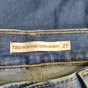 Levi's 720 High Rise Super Skinny Distressed Crop Jeans Sz 27 Blue Stretch