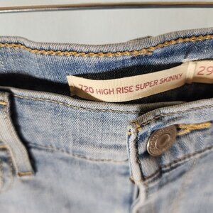 Levi’s 720 High-Rise Super Skinny Jeans – Light Wash Distressed Hems – Size 29
