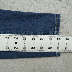 Distressed. Tag size is ( 34x30 ). See photo for actual measurements.