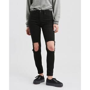 Levi's 721 High Rise Skinny Black Denim Destructed Jeans Women's Size 25 x 30