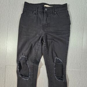 Levis 721 High Rise Skinny Jeans Womens 26 Black Distressed 26x30