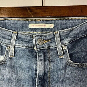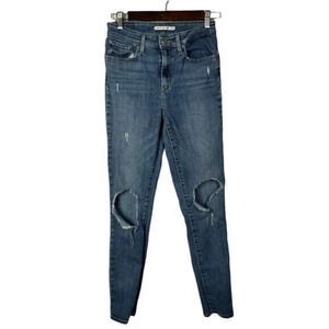 Levi's 721 Medium Wash High Rise Distressed Skinny Jeans 28