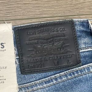 A high rise silhouette with a figure-hugging fit, cut from premium Italian stretch denim for the Levi's Made & Crafted collection. Create your next casual ensemble in these high waisted distressed jeans.