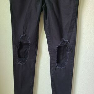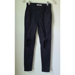 Levis 721 Skinny Jeans Sz 25 (24) High Rise Black Ripped Knees Distressed