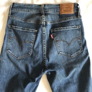 Levis 721 Womens High Rise Skinny Premium Blue Jeans Distressed Stretch Sz 25