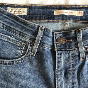 Levi’s 721 Womens High Rise Skinny Premium Blue Jeans Distressed Stretch Sz 25