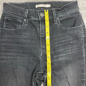 Levi’s 724 High Rise Straight Black Wash Denim Jeans Distressed Knees in size 26. Great preowned condition. Traditional five pocket style, zipper and button front closure, super soft stretch denim. Please see photos for approximate measurements and details. Item may show difference in color based upon photography and perception. Photos are part of the description, as everyone’s level of condition may vary. From smoke free and pet free home. All packages are shipped the same or next business day.