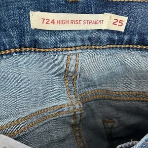 Levi’s 724 High Rise Straight Jeans Distressed Blue 25