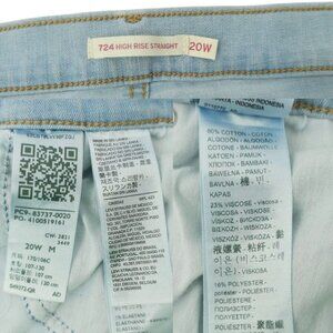 Levis 724 High Rise Straight Jeans Womens Size 20W Frayed Hem Light Wash Denim