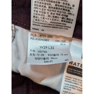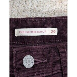 Levis 725 High Rise Bootcut corduroy jeans in a rich plum/wine color. Soft stretch 98% cotton/2% elastane with classic five-pocket styling, zip fly, Levis back patch and tab. Tag size W29 L32; measured approx. 30" waist (15" flat), 10.5" front rise, 31" inseam, 9.5" leg opening (flat). In perfect, like-new conditionno flaws. Style 18759-0041, made in Sri Lanka. A flattering high rise with a subtle bootcut that pairs with sneakers, clogs, or ankle boots. Ships fast from a smoke-free home.