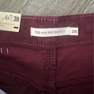This listing is for a NWT's Levi's 725 high-rise bootcut corduroy jeans in Windsor Wine in size 28 x 32. These corduroys are designed to flatter, hold, and lift.